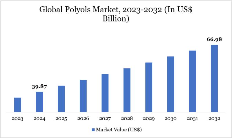 The Polyols Market reached US$ 39.87 billion in 2024 and is expected to reach US$ 66.98 billion by 2032, growing at a CAGR of 6.70% during the forecast period 2025-2032.