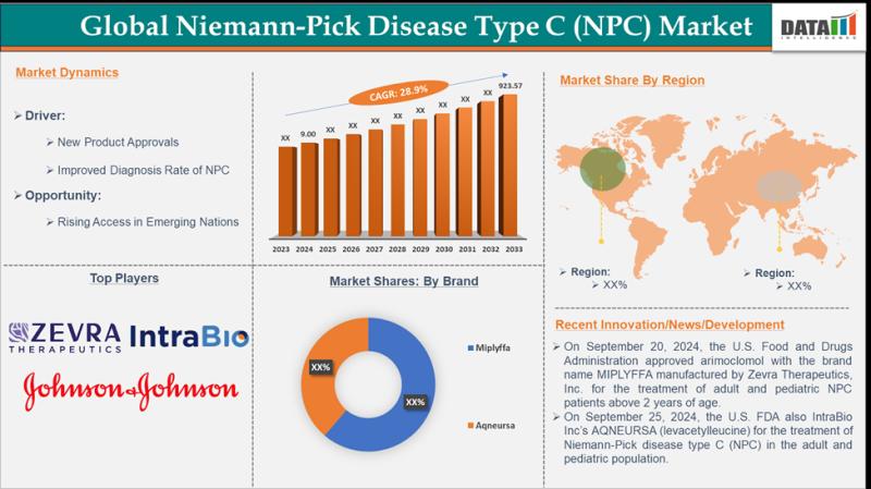 Niemann-Pick Disease Type C (NPC) market reached US$ 9.00 million in 2024 and is expected to reach US$ 923.57 million by 2033, growing at a CAGR of 28.9% during the forecast period of 2025-2033.