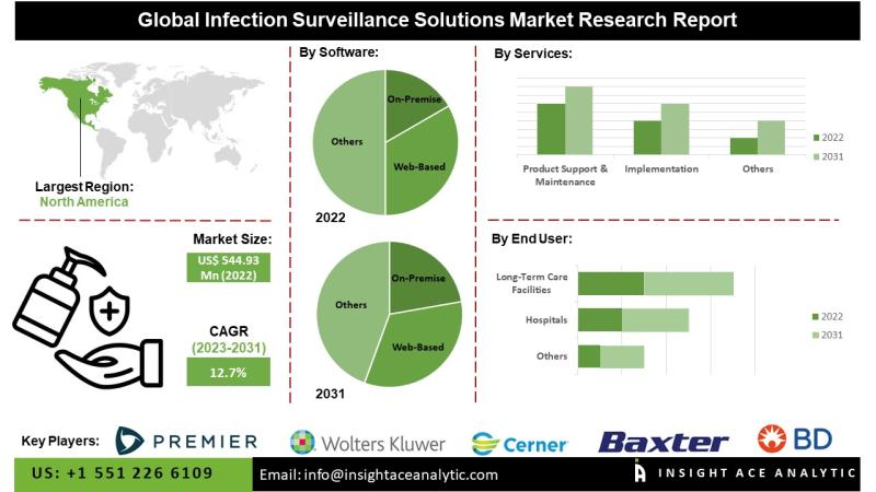 InsightAce Analytic Pvt. Ltd. announces the release of a market assessment report on the "Global Infection Surveillance Solutions Market- (By Product & Services (Software (On-premise Software, Web-based Software), Up to 50 hp (Product Support & Maintenance Services, Implementation Services, Training & Consulting services), By End User (Hospitals, (Large Hospitals, Medium Sized Hospitals, Small Hospitals), Long-term Care Facilities (Nursing Homes, Skilled Nursing Facilities, Assisted- Living Facilities), Other End Users)), Trends, Industry…