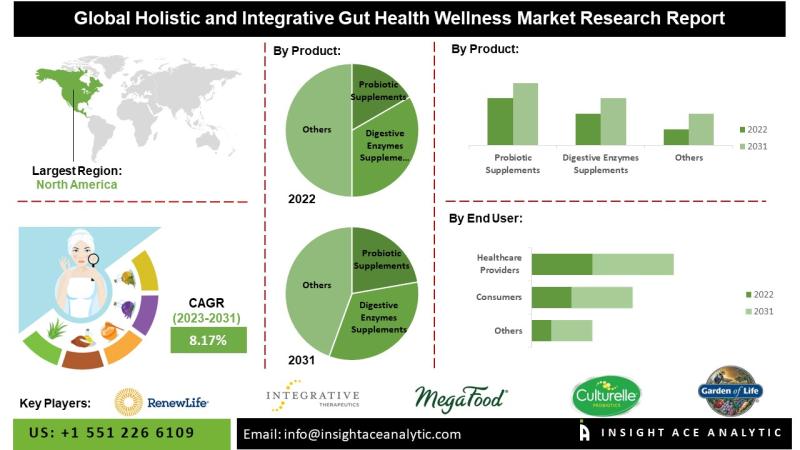 InsightAce Analytic Pvt. Ltd. announces the release of a market assessment report on the "Global Holistic and Integrative Gut Health Wellness Market- (By Product (Probiotic Supplements, Prebiotic Supplements, Digestive Enzymes Supplements, Functional Foods, Others), By End-user (Consumers, Healthcare Providers, Wellness Centers, Others)), Trends, Industry Competition Analysis, Revenue and Forecast To 2031."