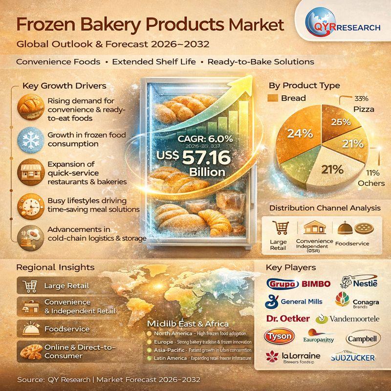 QY Research Inc., A global market research and consulting firm, has announced the release of its latest 2026 report titled "Frozen Bakery Products - Global Market Share and Ranking, Overall Sales and Demand Forecast 2026-2032." The report provides a data-driven analysis of the global Frozen Bakery Products market, integrating historical insights from 2020-2025 with forward-looking forecasts through 2032. It covers market size, competitive landscape, demand trends, and industry development,…