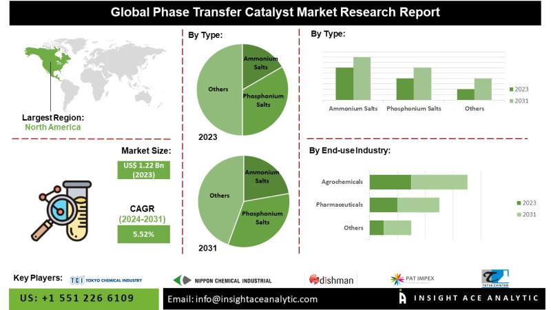 InsightAce Analytic Pvt. Ltd. announces the release of a market assessment report on the "Global Phase Transfer Catalyst Market- (By Type (Ammonium Salts, Phosphonium Salts, Others (Crown Ethers, Cryptands), By End-User Industry (Pharmaceutical (Active Pharmaceutical Ingredient (API), Drug Formulation), Chemical, Agrochemical, Others)), Trends, Industry Competition Analysis, Revenue and Forecast To 2031."