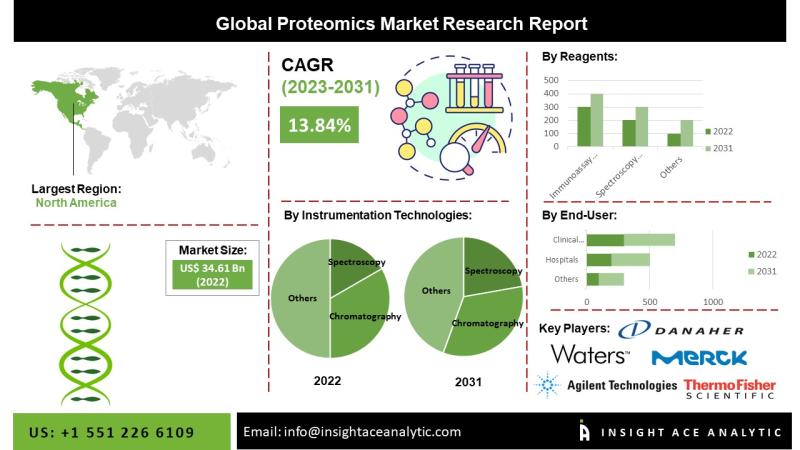 InsightAce Analytic Pvt. Ltd. announces the release of a market assessment report on the "Global Proteomics Market Size, Share & Trends Analysis Report By Product (Spectroscopy, Chromatography, Electrophoresis, X-Ray Crystallography), Reagent, Service, (Core Proteomics, Bioinformatics), Application (Diagnostic, Drug Discovery), End User (Hospital, Labs, Biopharma), Region, Market Outlook And Industry Analysis 2034"