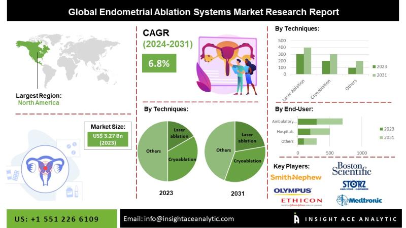InsightAce Analytic Pvt. Ltd. announces the release of a market assessment report on the "Global Endometrial Ablation Market- by Techniques (Cryoablation, Radiofrequency Ablation, Hydrothermal Ablation, Hysteroscopic Ablation, Thermal Balloon, and Others), End User (Hospitals, Ambulatory Surgical Centers and Others), Trends, Industry Competition Analysis, Revenue and Forecast To 2031."