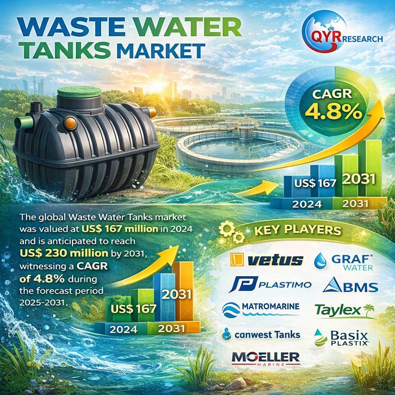 Market Summary -QY Research has released a new in-depth industry study titled "Global Waste Water Tanks Market Share and Ranking, Overall Sales and Demand Forecast 2025-2031." The report provides a comprehensive, data-driven evaluation of the global Waste Water Tanks market, supporting manufacturers, suppliers, investors, and policymakers in making informed decisions and identifying long-term growth opportunities.