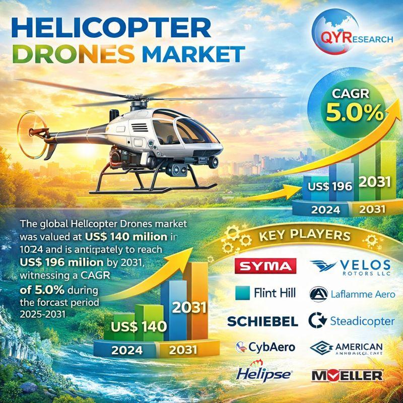 Market Summary -According to QY Research, a new publication titled "Global Helicopter Drones Market Share and Ranking, Overall Sales and Demand Forecast 2025-2031" provides an in-depth, data-driven analysis of the global Helicopter Drones market to support informed decision-making and sustainable growth strategies. Authored by experienced market analysts and subject-matter experts, the report delivers accurate market data, validated insights, and actionable recommendations for industry participants. It evaluates historical performance alongside future forecasts to clearly explain competitive dynamics, key growth drivers, market challenges, and emerging opportunities. With detailed coverage of market dynamics, segmentation, leading companies, and regional trends, this comprehensive report serves as a reliable strategic resource for businesses looking to gain a competitive edge in the global Helicopter Drones market.