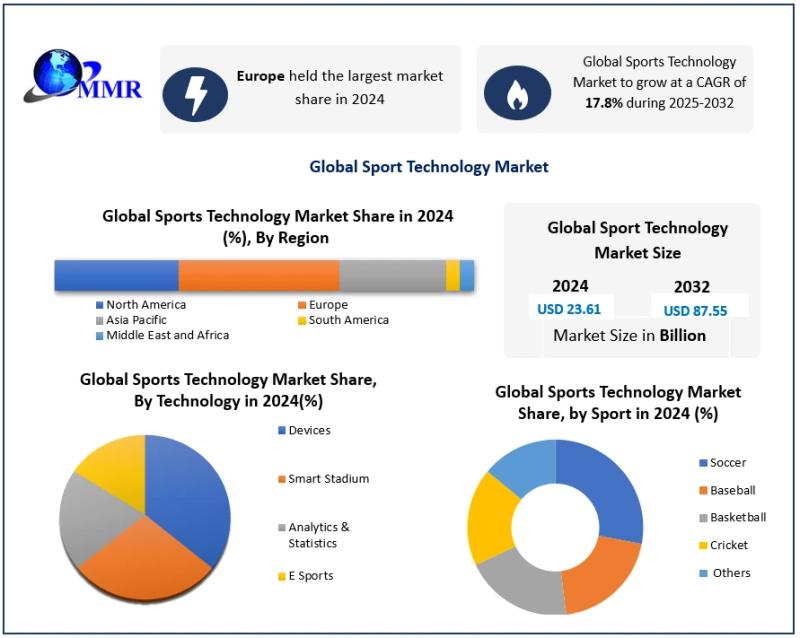 The Global Sports Technology Market is rapidly expanding as technological integration reshapes the sports industry. According to industry data, the market was valued at approximately USD 23.61 billion in 2024 and is projected to grow at a CAGR of around 17.8% from 2025 to 2032, potentially reaching USD 87.55 billion by 2032.