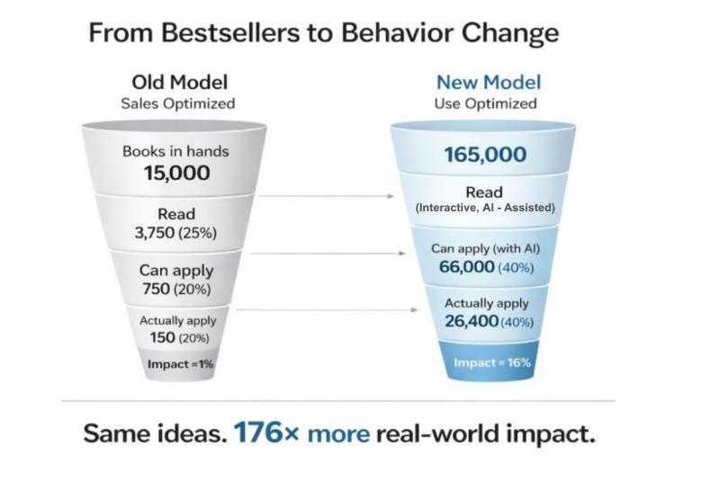 Traditional publishing optimizes for copies sold, rankings achieved, and reviews collected. These metrics reward visibility, not impact. A book can sell well, review well, and headline keynotes - and still produce almost no sustained behavior change.