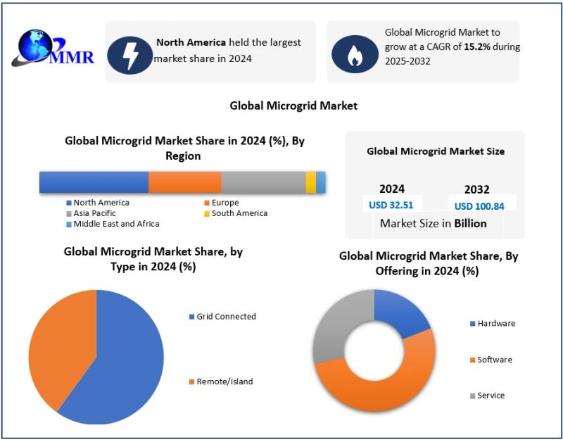 The Global Microgrid Market was valued at USD 32.51 billion in 2024 and is projected to reach approximately USD 100.84 billion by 2032, growing at a CAGR of 15.2% between 2025 and 2032.