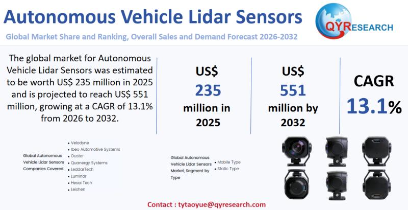 Global leading market research publisher QYResearch published the release of its latest report, "Autonomous Vehicle Lidar Sensors - Global Market Share, Ranking, Sales, and Demand Forecast 2025-2031". This in-depth report provides a complete analysis of the global Autonomous Vehicle Lidar Sensors market, offering critical insights into market size, share, demand, industry development status, and future forecasts.…