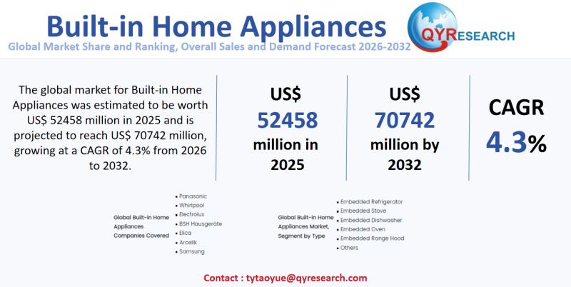 Global leading market research publisher QYResearch published the release of its latest report, "Built-in Home Appliances - Global Market Share, Ranking, Sales, and Demand Forecast 2026-2032". This in-depth report provides a complete analysis of the global Built-in Home Appliances market, offering critical insights into market size, share, demand, industry development status, and future forecasts. Whether you're a…