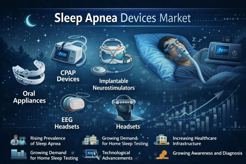 Sleep apnea devices include CPAP machines, BiPAP devices, and oral appliances designed to manage sleep apnea by ensuring proper airflow during sleep. These devices help reduce snoring, improve oxygen levels, and enhance sleep quality. The market is driven by…