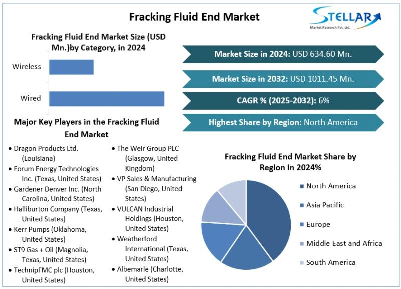 Fracking Fluid End Market is expected to grow at a CAGR of 6% during the forecast period. The Fracking Fluid End Market is expected to reach USD 1011.45 Mn. in 2032 from USD 634.60 Mn. in 2024.