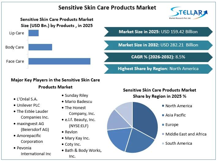 The Sensitive Skin Care Products Market size was valued at USD 159.42 Billion in 2025 and the total Global Sensitive Skin Care Products revenue is expected to grow at a CAGR of 8.5% from 2026 to 2032, reaching nearly USD 282.21 Billion by 2032.