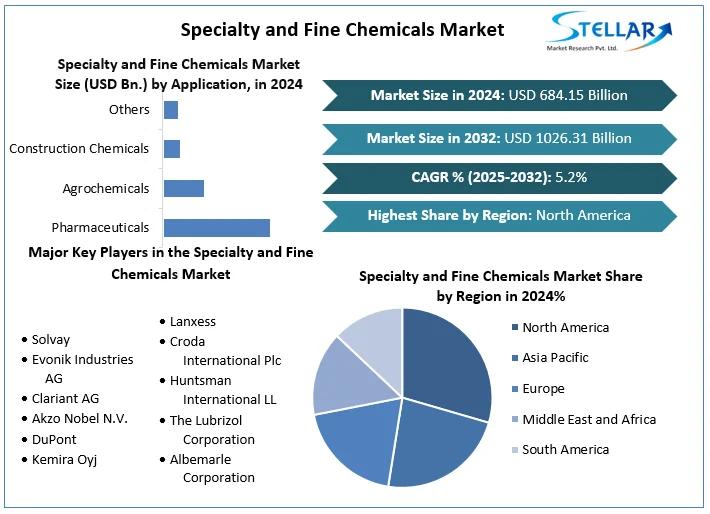 Specialty and Fine Chemicals Market Size was valued at USD 684.15 Billion in 2024 and is expected to reach USD 1026.31 Billion by 2032 at a CAGR of 5.2 % over the forecast period.