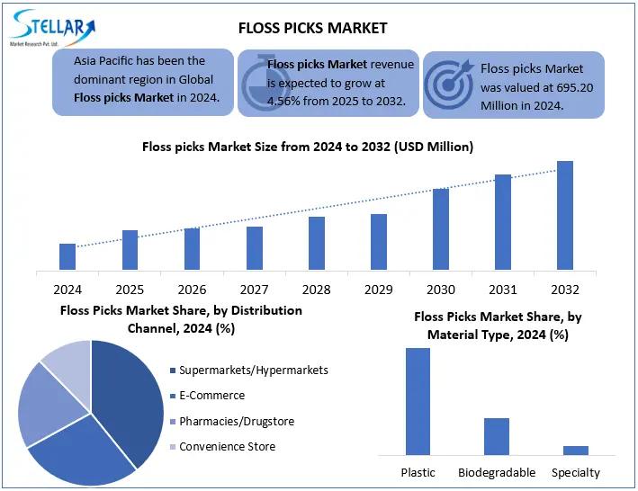 Floss Picks Market Size was valued at USD 695.20 Million in 2024 and it is expected to reach USD 993.19 Million by 2032. The Market CAGR is expected to be around 4.56% during the forecast period (2025-2032)