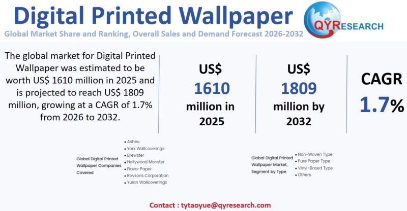Global leading market research publisher QYResearch published the release of its latest report, "Digital Printed Wallpaper - Global Market Share, Ranking, Sales, and Demand Forecast 2025-2031". This in-depth report provides a complete analysis of the global Digital Printed Wallpaper market, offering critical insights into market size, share, demand, industry development status, and future forecasts. Whether you're a…