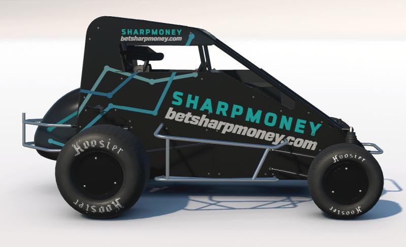 SharpMoney branding will appear prominently on Wease's car during competition at the Chili Bowl Nationals.