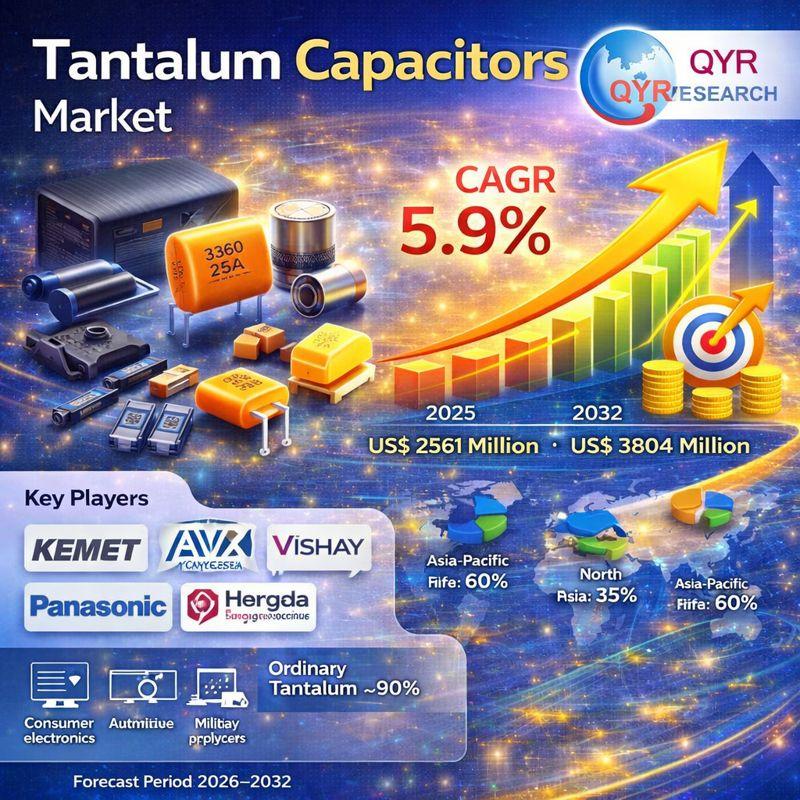 The global Tantalum Capacitors market was valued at US$ 2,561 million in 2025 and is projected to reach US$ 3,804 million by 2032, expanding at a steady CAGR of 5.9% during the forecast period 2026-2032.