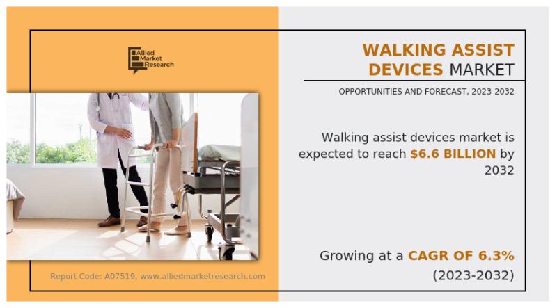 According to a report published by Allied Market Research titled "Walking Assist Devices Market by Product, Age Group, and End User: Global Opportunity Analysis and Industry Forecast, 2023-2032," the global market was valued at $3.6 billion in 2022 and is projected to reach $6.6 billion by 2032, registering a CAGR of 6.3% during the forecast period.