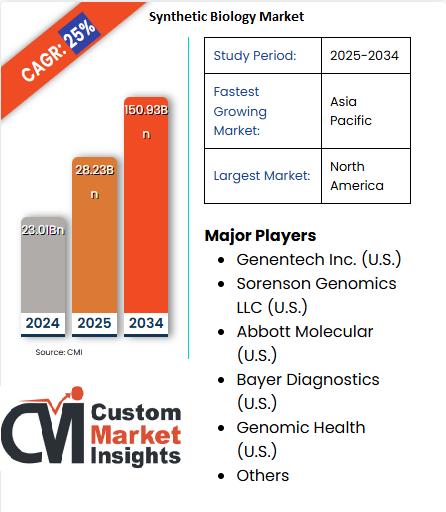 • The global Synthetic Biology Market was valued at USD 28.23 Billion in 2025.
