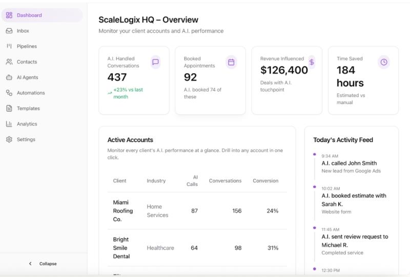 The proprietary system builds, licenses, and operates high-performance AI client acquisition systems for service businesses and agencies. The platform functions as a licensed backend partner that helps people own and scale businesses with minimal founder dependency.