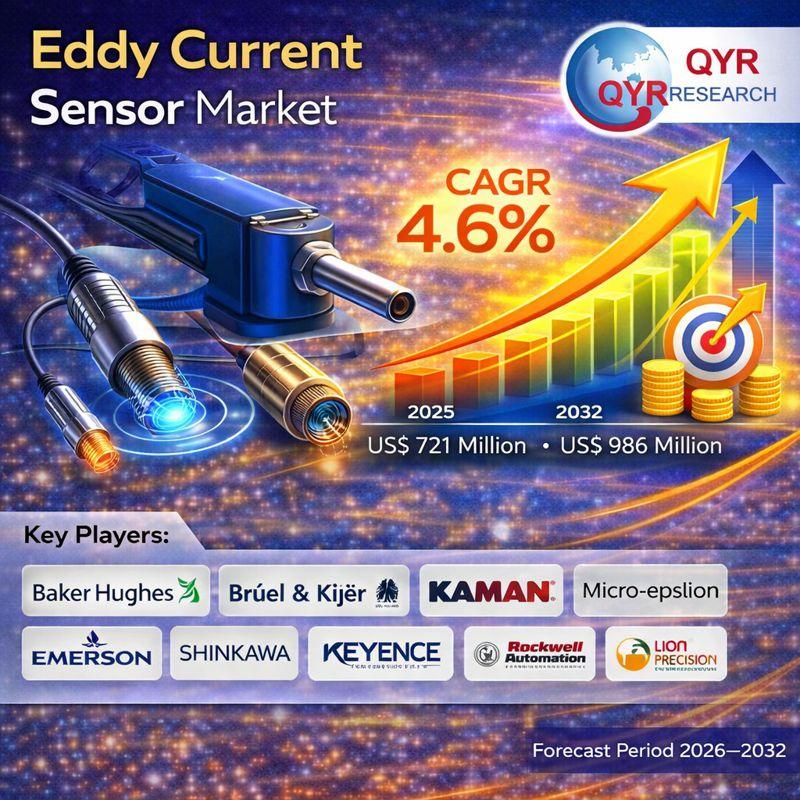 The global Eddy Current Sensor market was valued at US$ 721 million in 2025 and is projected to reach US$ 986 million by 2032, expanding at a CAGR of 4.6% during the forecast period 2026-2032.