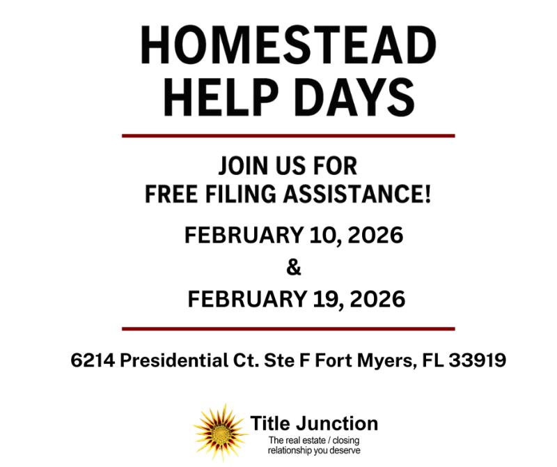 Helping Fort Myers and Cape Coral Homeowners Save on Property TaxesFort Myers, FL - Title Junction, a trusted Fort Myers title company serving the Southwest Florida real estate community, is stepping up to support local homeowners by hosting two free Florida Homestead Exemption Filing Help Days this February.