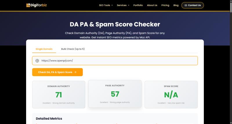 [India] - [19-01-2026] - DigiForBiz, a growing digital marketing tools platform, has launched a free Domain Authority (DA), Page Authority (PA), and Spam Score Checker designed to help website owners, SEOs, bloggers, and digital marketers quickly evaluate website quality without registration or usage limits.Unlike many SEO tools that restrict access behind paywalls or mandatory sign-ups, the DigiForBiz DA & PA Checker is completely free, requires no login, and delivers instant results in a single click. The tool enables users to assess both domain-level and page-level authority while also identifying potential spam risk-an essential factor for backlink analysis and outreach decisions.