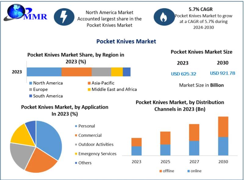 Pocket Knives Market Overview The Pocket Knives Market is witnessing steady growth driven by increasing demand for compact, multi-functional, and portable tools across household, outdoor, and commercial applications. Pocket knives-also known as folding knives or penknives-feature one or more blades that fold into the handle, making them safe and convenient for everyday carry. With blade lengths typically ranging from 2 to 6 inches, these tools are widely used for cutting, camping,