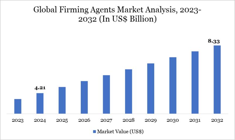 Firming Agents Market Size reached US$ 4.21 billion in 2024 and is expected to reach US$ 8.33 billion by 2032, growing with a CAGR of 8.91% during the forecast period 2025-2032.
