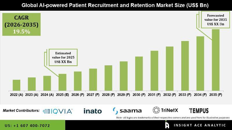 InsightAce Analytic Pvt. Ltd. announces the release of a market assessment report on the "AI-powered Patient Recruitment and Retention Market"-, By Service Type (Patient Recruitment, Patient Retention, Other Cross-Cutting AI Technologies), By Technology(NLP, Machine Learning, Chatbots/Virtual Assistants, Predictive Analytics, Others), By Deployment Type (Cloud-Based, On-Premise), By Therapeutic Area (Oncology, Cardiovascular, Infectious Diseases, CNS/Neurology, Endocrine/Metabolic, Hematological, Others), By Trial Phase (Phase I, Phase II, Phase III, Phase IV), By End-User (Pharma/Biotech,…
