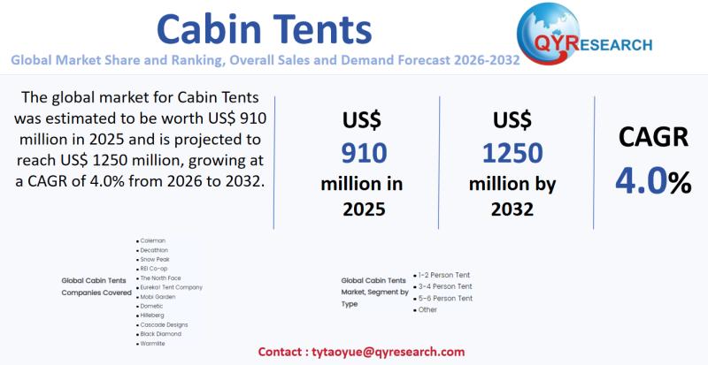 Global leading market research publisher QYResearch published the release of its latest report, "Cabin Tents - Global Market Share, Ranking, Sales, and Demand Forecast 2025-2031". This in-depth report provides a complete analysis of the global Cabin Tents market, offering critical insights into market size, share, demand, industry development status, and future forecasts. Whether you're a stakeholder, investor, or…