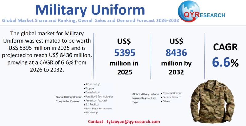 Global leading market research publisher QYResearch published the release of its latest report, "Military Uniform - Global Market Share, Ranking, Sales, and Demand Forecast 2025-2031". This in-depth report provides a complete analysis of the global Military Uniform market, offering critical insights into market size, share, demand, industry development status, and future forecasts. Whether you're a stakeholder, investor, or…