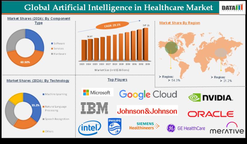 According to DataM Intelligence, the global AI in Healthcare market reached US$ 27.64 billion in 2024 and is expected to reach US$ 305.96 billion by 2033, growing at a CAGR of 30.1% during 2025-2033, driven by rapid integration of machine learning and NLP in diagnostics, surging demand for AI-powered drug discovery and virtual assistants, increasing adoption in medical imaging and precision medicine, strong investments in healthcare robotics and analytics, and…