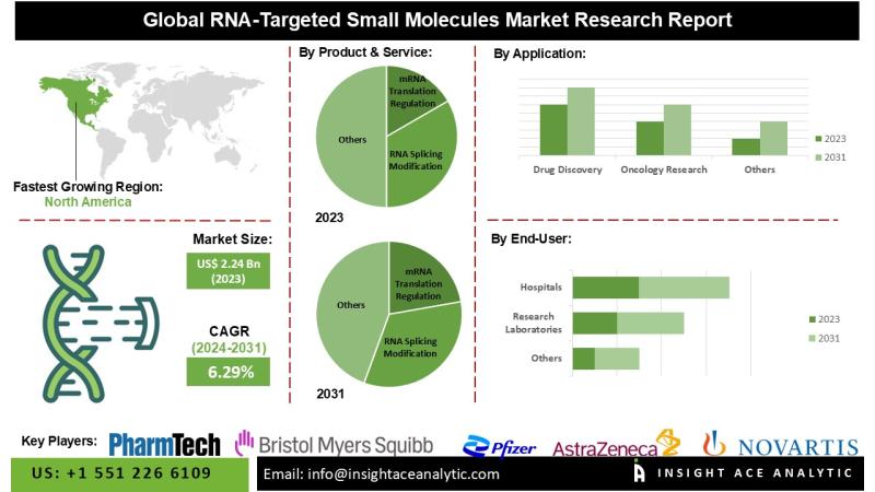 InsightAce Analytic Pvt. Ltd. announces the release of a market assessment report on the " RNA-Targeted Small Molecules Market - (By Product & Service (mRNA translation regulation, Indirect RNA targeting-epitranscriptomics, RNA Splicing Modification, Direct RNA Targeting), By Application (Drug discovery, Oncology research, Disease identification), By End-User (Hospitals, Research laboratories, Contract research organizations, Pharmaceutical and biotechnology companies)), Trends, Industry Competition Analysis, Revenue and Forecast To 2031."