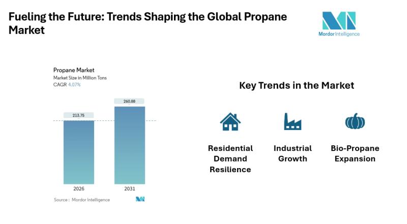 According to Mordor Intelligence, the propane market size is expected to reach 254.36 million tons by 2030, up from 205.39 million tons in 2025. This growth reflects propane's versatility as a heating fuel, petrochemical feedstock, and autogas alternative. The propane industry is entering a period of steady expansion, supported by rising demand across residential, industrial, and transportation sectors.Gain Access to Detailed Segmentation, Trends, and Competitive Landscape: https://www.mordorintelligence.com/industry-reports/propane-market?utm_source=openpr