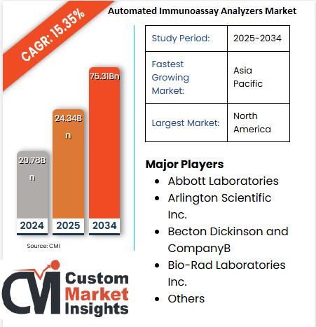 • The Automated Immunoassay Analyzers Market was valued at USD 24.34 Billion in 2025.