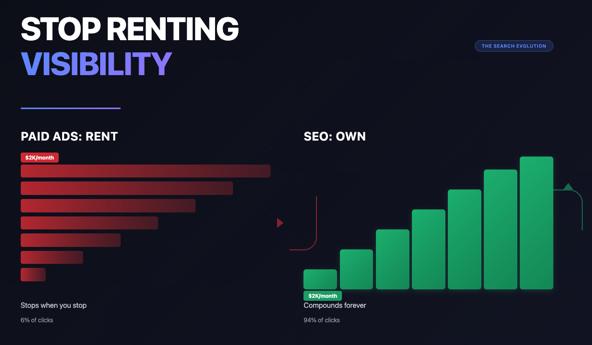 The fundamental distinction Local Orbit emphasizes is the difference between renting visibility through paid ads and owning authority through organic rankings. Renting requires continuous payment to maintain position. The moment spending stops, visibility vanishes. No equity remains. No asset exists. The business owns nothing from the investment except historical data about what used to work.