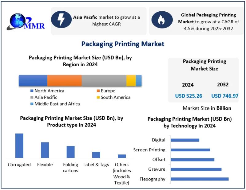 The packaging printing market was valued at approximately USD 525.26 billion in 2024 and is forecast to grow significantly by 2032.