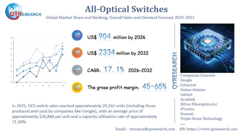 Global leading market research publisher QYResearch published the release of its latest report, "All-Optical Switches - Global Market Share, Ranking, Sales, and Demand Forecast 2025-2031". This in-depth report provides a complete analysis of the global All-Optical Switches market, offering critical insights into market size, share, demand, industry development status, and future forecasts. Whether you're a stakeholder, investor, or…