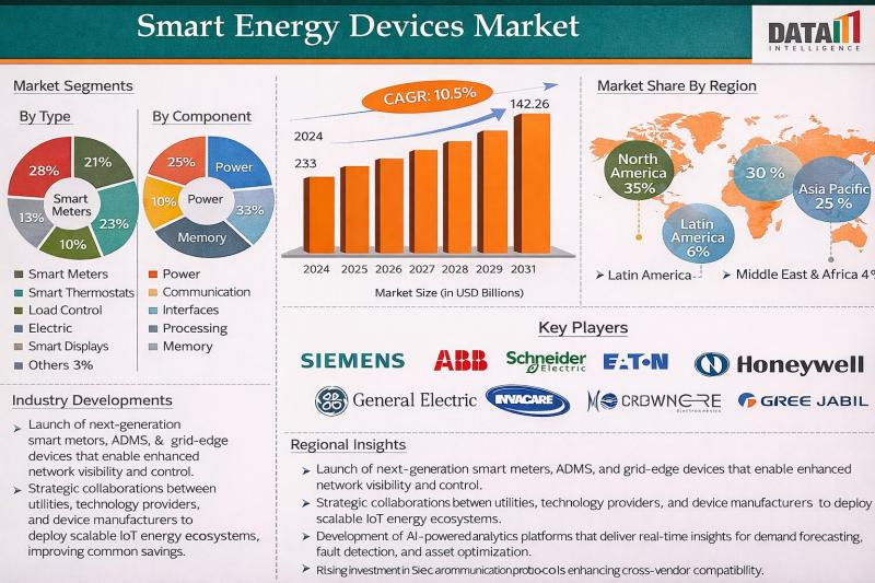 Smart Energy Devices Market to Reach USD 142.26 Billion by 2033 at 10.5% CAGR; N …