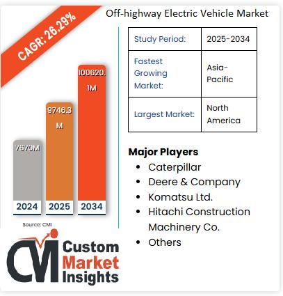 According to Custom Market Insights, The off-highway electric vehicle market size was estimated at USD 9746.3 Million in 2025 and is anticipated to grow to approximately USD 100620.1 Million by 2034, witnessing a CAGR growth of roughly 26.29% between 2025 and 2034. The report examines the off-highway electric vehicle market's driving and restraining factors and the impact analysis throughout the projection period. Further, the report observes global opportunities in the…