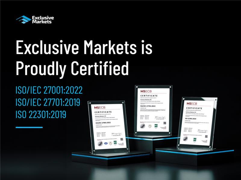 Dubai, UAE, Jan 21, 2026: Exclusive Markets, a regulated financial broker, has reinforced the foundations of its governance framework by successfully securing and maintaining internationally recognised ISO certifications through MSECB.Today, the broker announced the achievement of two prestigious ISO certifications, ISO/IEC 27701:2019 for Privacy Information Management and ISO 22301:2019 for Business Continuity Management, alongside the renewal of its ISO/IEC 27001:2022 certification for Information Security Management System (ISMS).