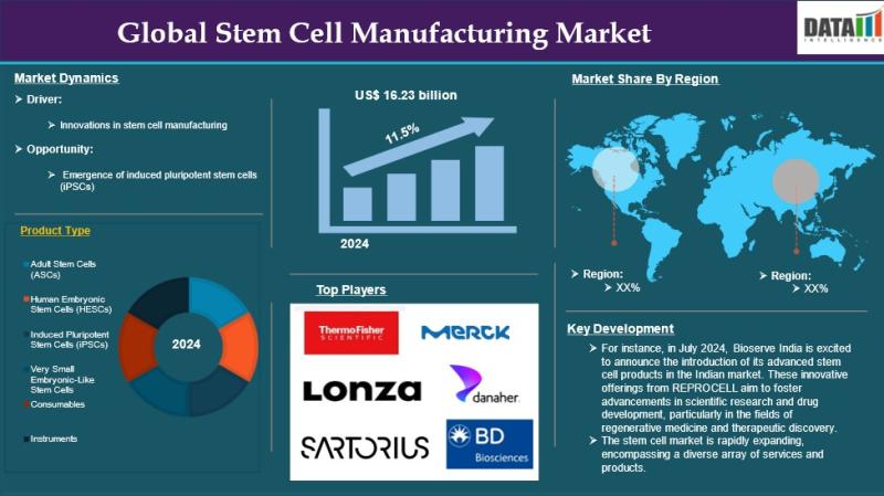 The stem cell manufacturing market reached US$ 16.23 billion in 2024 and is expected to reach US$ 40.40 billion by 2032, growing at a CAGR of 11.5% during the forecast period 2025-2032. The market is expanding rapidly due to increasing demand for stem cell-based therapies, growing investment in regenerative medicine, and rising use of stem cells in drug discovery and clinical research. Advancements in bioprocessing technologies, automation, and scalable manufacturing…