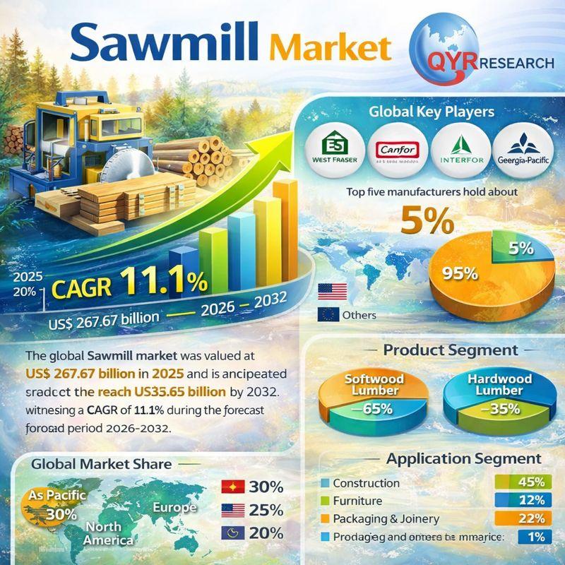 QY Research Inc., A global market research and consulting firm, has announced the release of its latest 2025 report titled "Sawmill - Global Market Share and Ranking, Overall Sales and Demand Forecast 2026-2032." The report provides a data-driven analysis of the global Sawmill market, integrating historical insights from 2020-2024 with forward-looking forecasts through 2032. It covers market size, competitive landscape, demand trends, and industry development, offering strategic insights for…