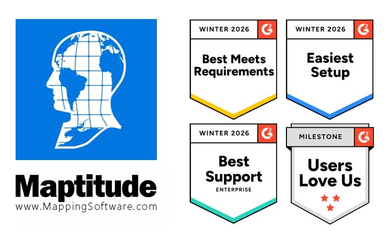 "Consistent recognition from G2 reflects how customers actually experience Maptitude in their day-to-day work," said Stewart Berry, VP of Maptitude. "These awards validate our focus on practical and easy-to-use GIS tools, transparent pricing, responsive free support, and helping organizations turn location data into better decisions."