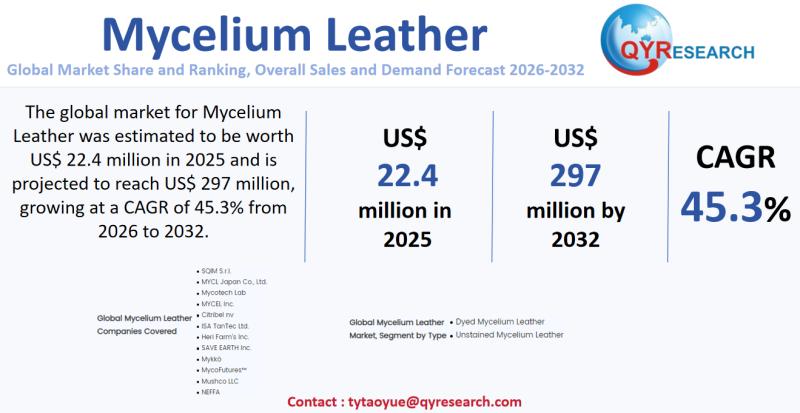 Global leading market research publisher QYResearch published the release of its latest report, "Mycelium Leather - Global Market Share, Ranking, Sales, and Demand Forecast 2025-2031". This in-depth report provides a complete analysis of the global Mycelium Leather market, offering critical insights into market size, share, demand, industry development status, and future forecasts. Whether you're a stakeholder, investor, or…