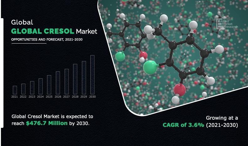 The global cresols market was estimated at $334.8 million in 2020 and is expected to hit $476.7 million by 2030, registering a CAGR of 3.6% from 2021 to 2030. The report provides an in-depth analysis of the top investment pockets, top winning strategies, drivers & opportunities, market size & estimations, competitive scenario, and wavering market trends.