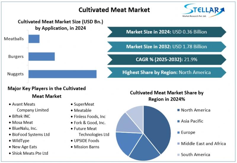 The Cultivated Meat Market was valued at USD 0.36 Bn. in the year 2024 and is expected to reach USD 1.78 Bn. by 2032 with a growing CAGR of 21.9% over the forecast period of 2025-2032.